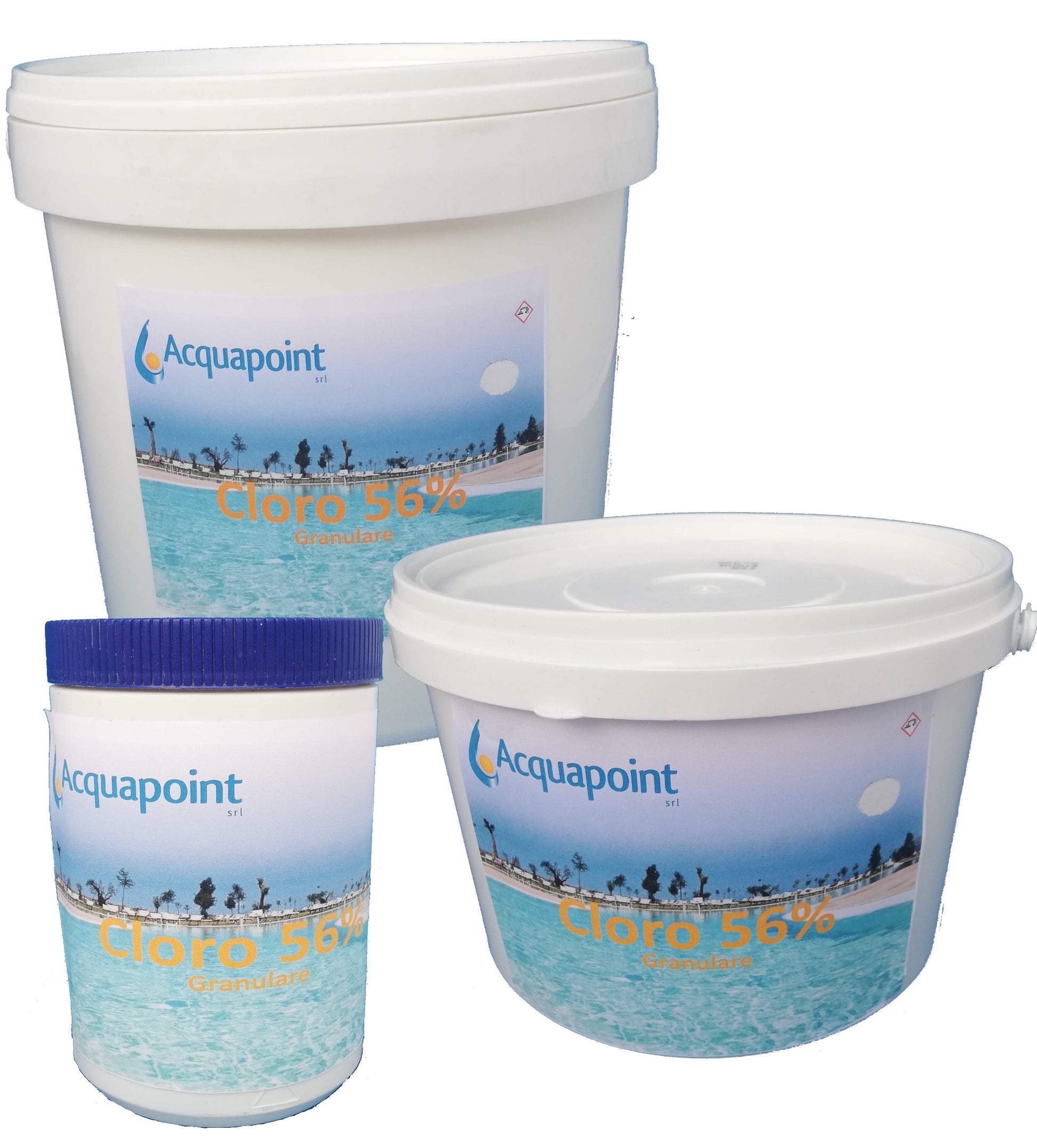 Dicloro 56% granulare conf.ne 5 Kg. Dicloro granulare a rapida dissoluzione, altamente stabilizzato e con un contenuto di cloro utile del 56%, per il trattamento dell’acqua delle piscine.